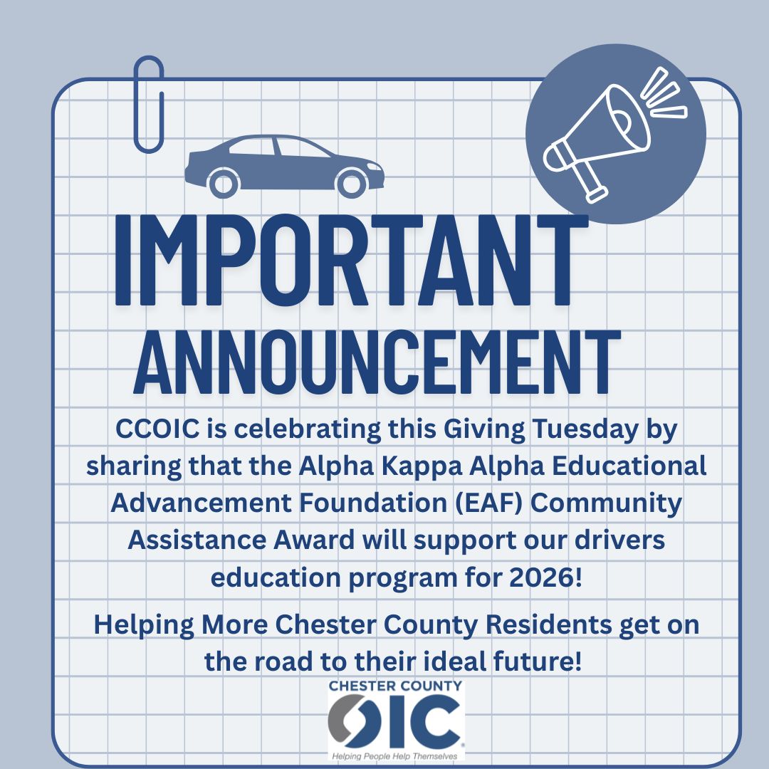 Chester County Opportunities Industrialization Center Inc. (OIC) will provide supportive services, including case management, childcare assistance and transportation for participants in their workforce reintegration and adult education programs.