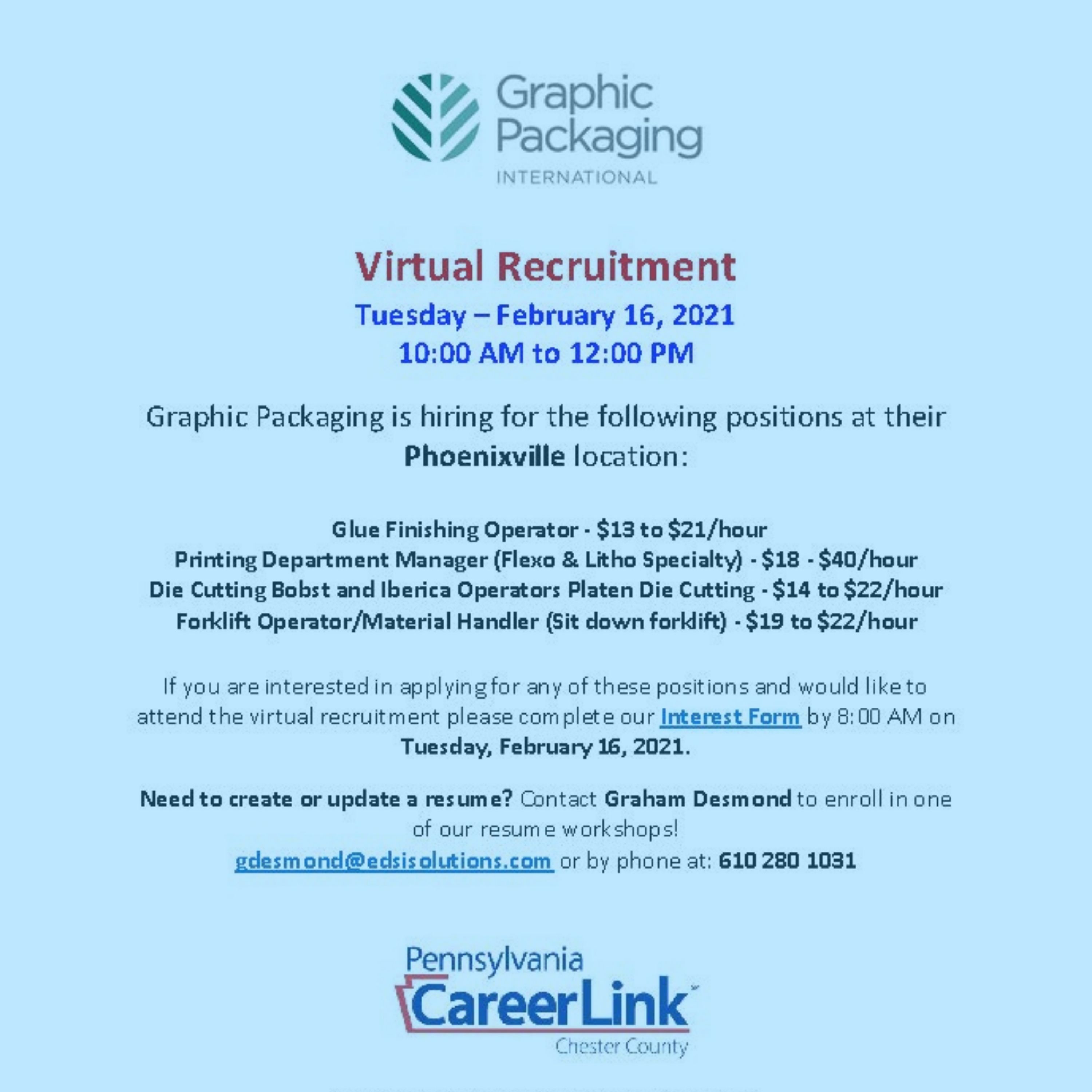 Compensation: $15.00 to $17.00 per hour