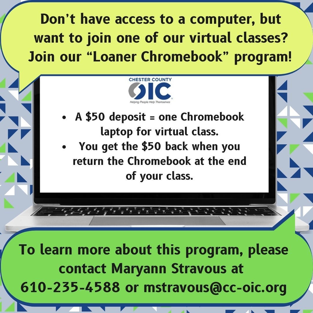 CCOIC is happy to offer our Loaner Chromebook program for potential virtual students!