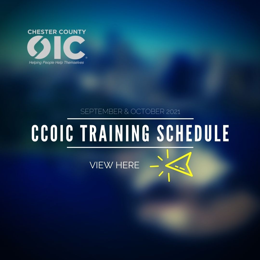 CCOIC Training Schedule Written by Admin on September 15, 2021. Posted in News, Training. Checkout out our upcoming training schedule. Call 610-696-2344 for more information. Training Previous Next