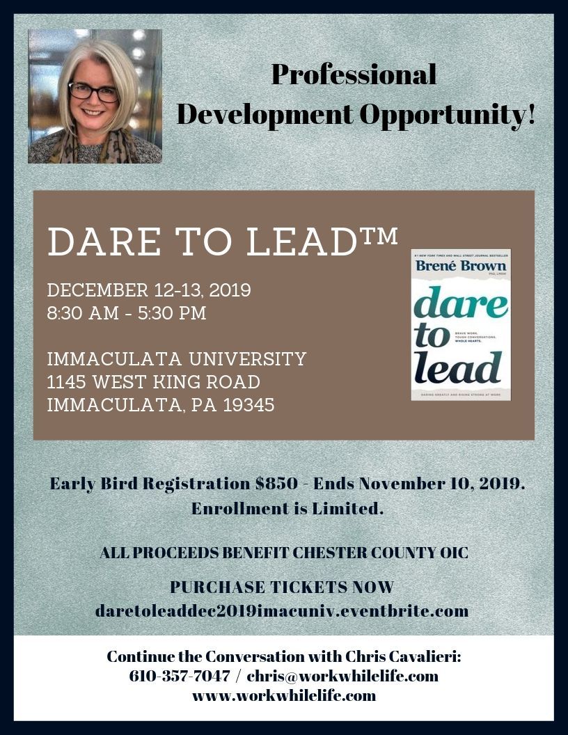 Join us December 12-13 from 8:30am – 5:30pm at Immaculata University to participate in the “Dare to Lead” Workshop led by Chris Cavalieri.