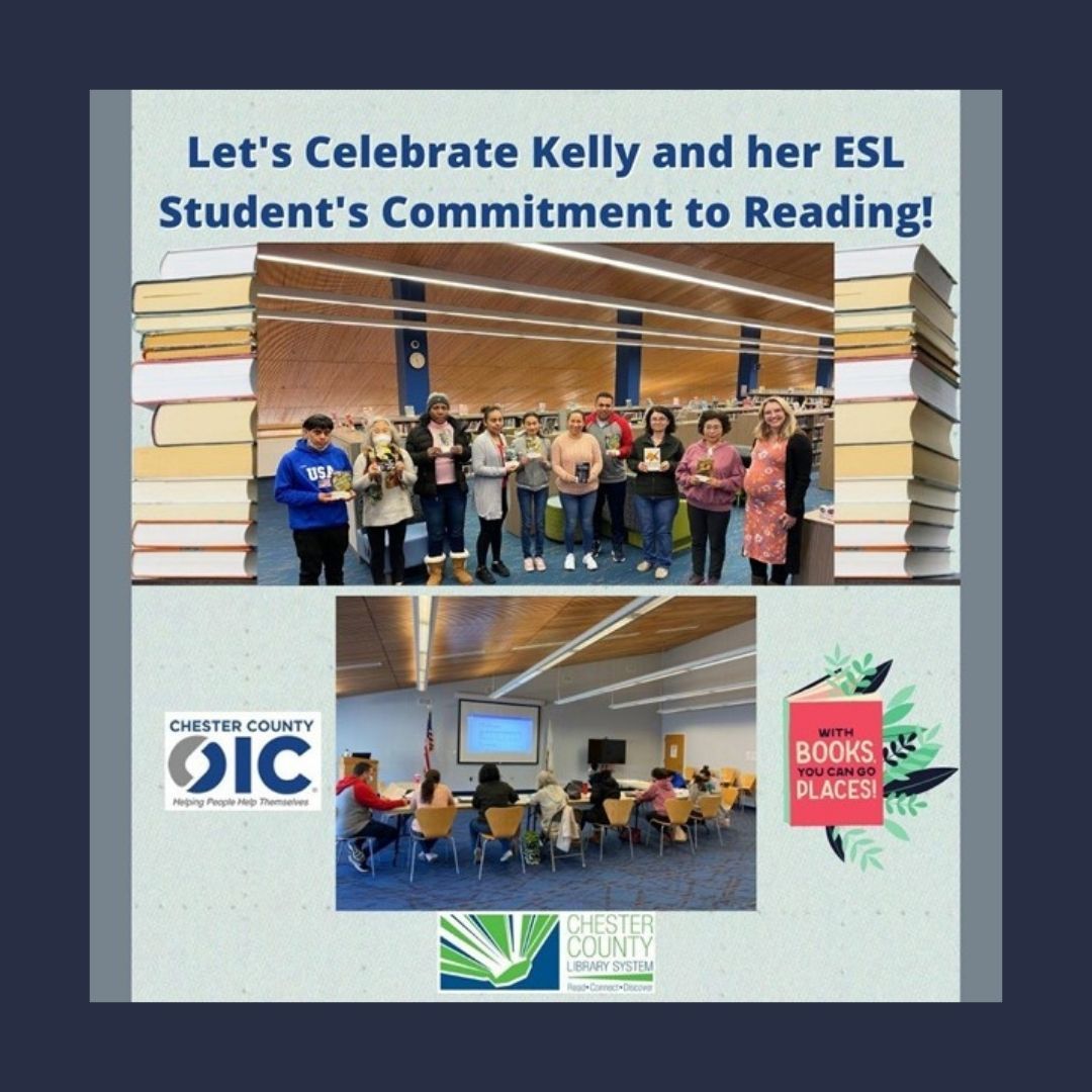 “I took some pictures of my class yesterday during our library visit. We had a great time! We started our day with a library tour provided by a librarian (Jamie did a great job!). Our students were able to learn about the resources provided by Chester County Library in Exton as well as online resources. We went to the ESL area of the library, and students picked Level 1 graded readers to practice extensive reading at home. Afterwards, students created a reading schedule that fits their daily activities and a reading goal to finish the book. They received instruction on reading strategies and how to create a personal dictionary. We completed the Library Card Application Form together in the classroom and went together to the front desk to get library cards. All the students left the library with brand new library cards and books! (They were very excited about that).”