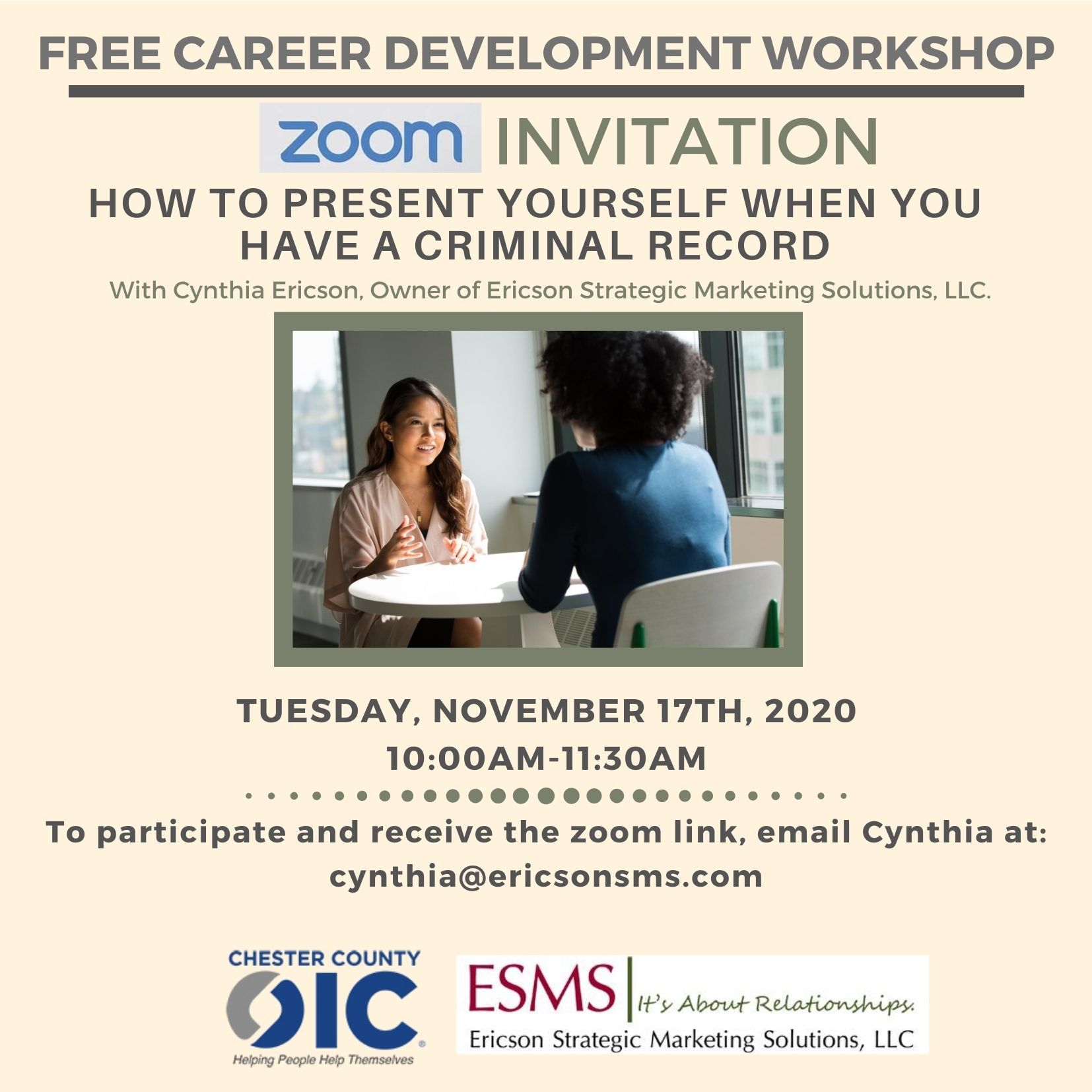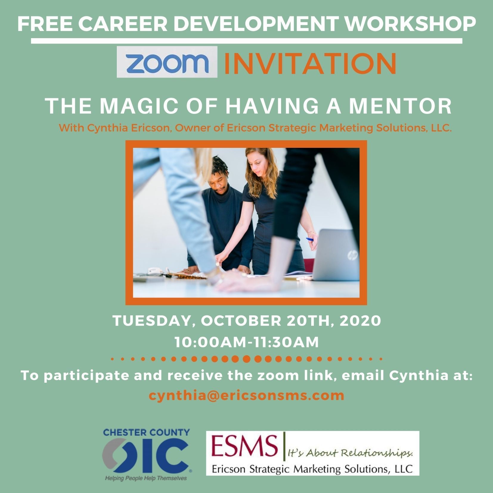 Join Cynthia Ericson, owner of Ericson Strategic Marketing Solutions, LLC for a free career development workshop series. To participate and receive the zoom link, email Cynthia at: cynthia@ericsonsms.com.